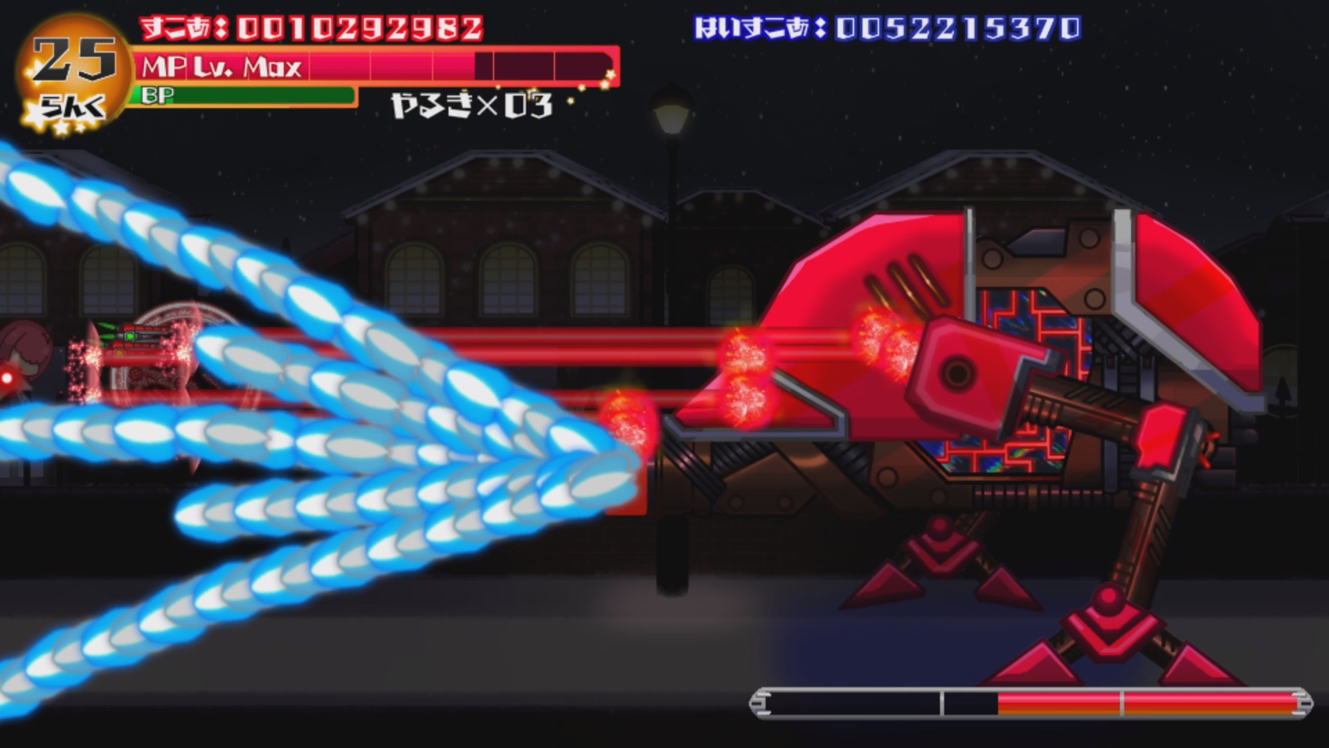 だがそれはボス戦での話。道中に関して言えばちょっとダルいところはある。なんか全体的に展開がのっぺりしていているのに加え、自機の高性能さゆえに雑に動いてもだいたいなんとかなってしまうので、どうにもプレイに身が入らず虚無る場面が多い。スコアエクステンドが固定で稼ぎプレイする意味がほとんど無いということも要因のひとつだろう。「上手いプレイをしたい」っていう意欲が湧いてこないんだよな……。2周エンド狙いだと1周目の前半が別の意味でとてもツラいゲームである。