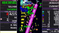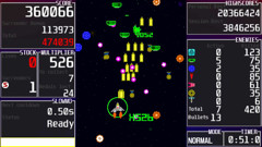 メインとなるこの降伏システムのほかにもさまざまなアレンジを加えた別モードがたくさんあるのだが、ぶっちゃけそれらはあんまり面白くなくてほとんどやってない。やっぱりシンプルさと降伏チキンレースがあってこそのゲームだと思う。まあその降伏ボーナスも実はそれほど大きくなくて、ムリして稼ぎに行って普通に死ぬほうがスコア伸びることもけっこう多かったりするんだけど……。いっそ降伏しないとスコアゼロになるぐらい極端に割り切ったルールでもよかったと思う。